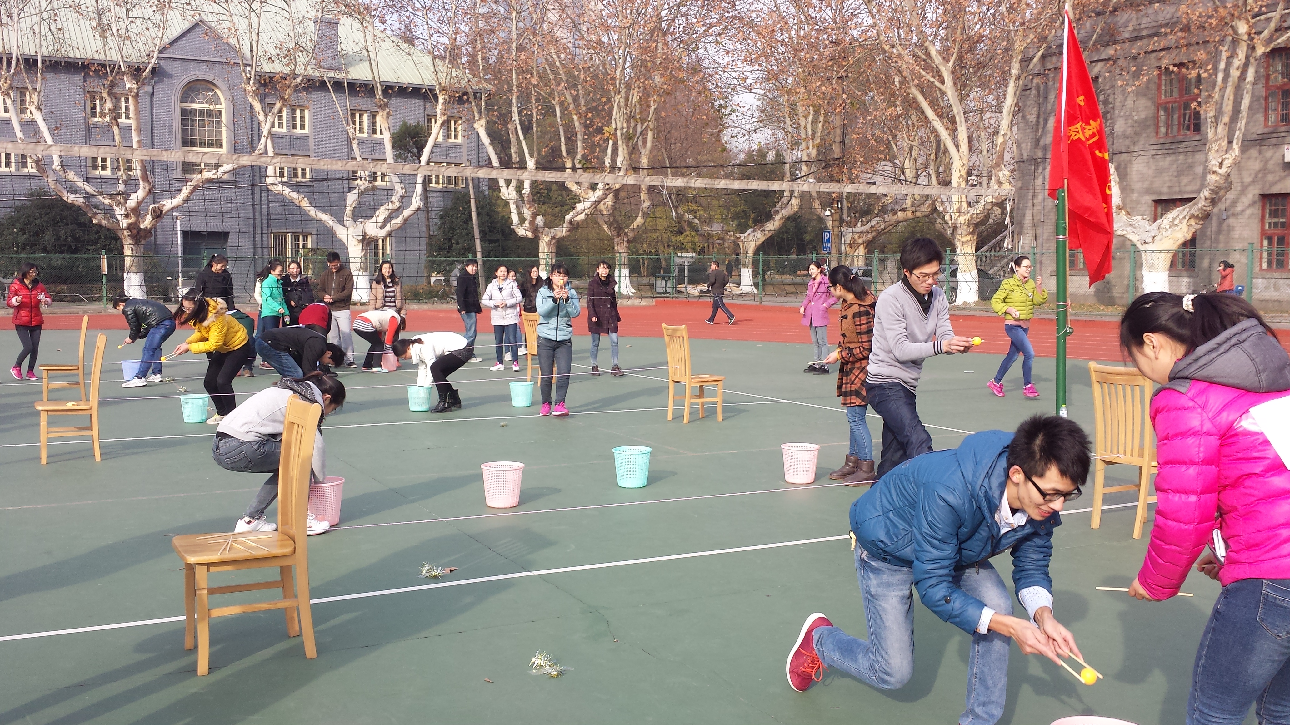 本次轻运会得到了本院同学的积极响应,气氛热烈。昨天正好是南京大屠杀国家公祭日,轻运会的开幕式首先由邱振清书记主持下集体为南京大屠杀遇难的30万同胞默哀一分钟、然后由邱书记致开幕辞,运动员宣誓,裁判宣誓。本次运动会的比赛项目包括集体项目和个人项目。集体项目以课题组为单位,锻炼大家的集体协作能力和增进课题组内部成员的感情,项目包括两人三足、拔河、乒乓球障碍接力、跳大绳。个人项目以个人为单位,展现个人的身体素质,项目包括跳绳、旋转投篮、自行车慢骑。
