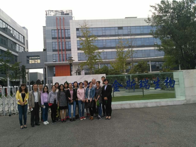 2016.9.29我院直属党支部书记邱振清教授为我院2017届毕业生举办了一场生动的就业讲座,于2016年10月10日邱书记组织和带领我院2017届硕士和博士毕业生来到了位于江宁区的金斯瑞生物科技有限公司进行了就业参观与交流活动。此次活动旨在为毕业班学生增强就业认识和提高就业能力,同时提供新的就业机会。通过对金斯瑞生物科技有限公司的参观让毕业生更好的了解了生物公司与高校实验室在操作环境、生产模式方面以及学校与公司管理模式与发展目标上的不同之处,为他们就业开阔了思路,提供了帮助。