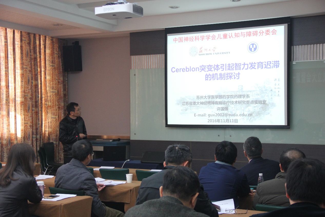 会议首先由谢维教授介绍儿童认知与障碍分委会筹备过程;进行分委会组织机构的选举;受邀请的报告人介绍相关领域最新的研究成果。南京医科大学柯晓燕教授、浙江大学罗建红教授、北京大学张晨教授、军事医学科学院吴海涛教授、苏州大学马全红教授、广州妇幼保健医院唐亚平教授、苏州大学许国强教授在会议上发表精彩演讲,介绍各课题组在儿童自闭症的临床表现和神经发育障碍机制研究中的最近进展,探讨相关领域今后的研究思路以及研究方向,并与在场的老师和同学们进行了热烈的交流。