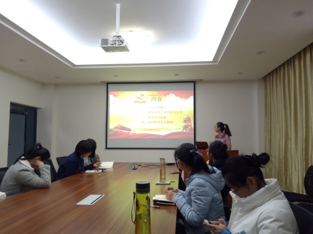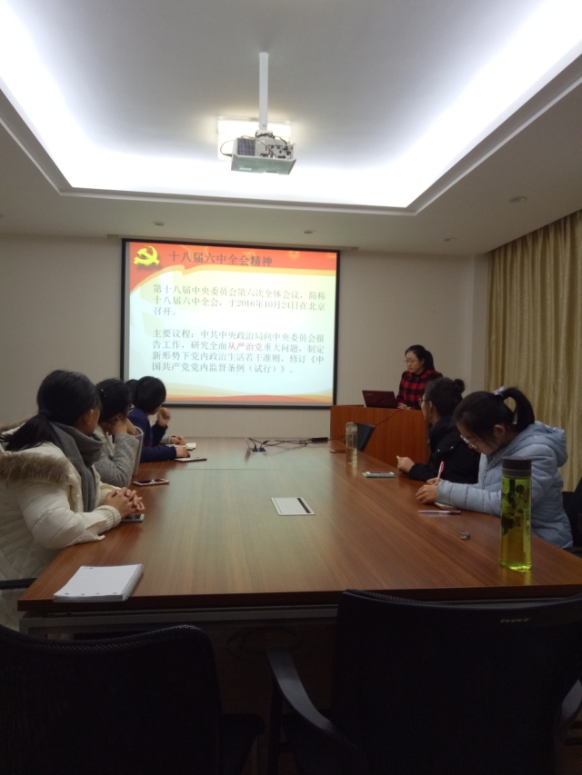 第二小组张彦秋分别从会议概况、加强和规范党内政治生活、加强党内监督、如何贯彻全会精神四个方面详细剖析了十八届六中全会。