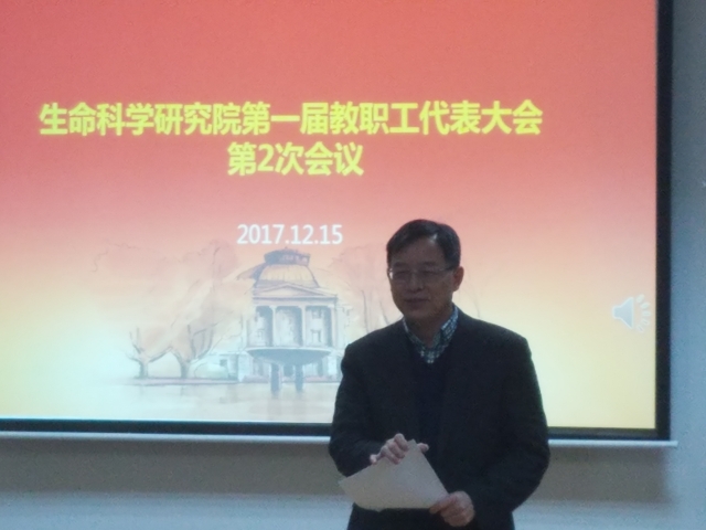 2017年12月15日下午,生命科学研究院第一届教职工代表大会第2次会议在李文正南楼会议室隆重举行。生命科学研究院全体在校教师出席了本次会议。会议由研究院邱振清书记主持。