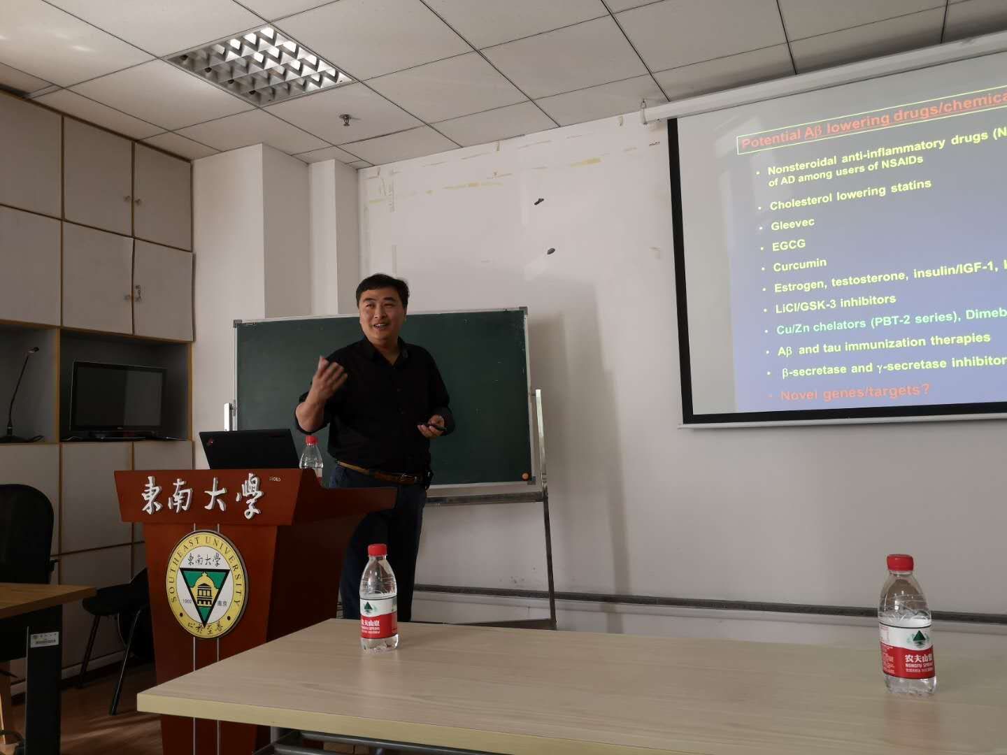 2018年5月3日上午,来自Sanford Burnham Prebys 医学研究所的许华曦教授为生命科学研究院师生带来名为“Novel genes and pathways contributing to the pathogenesis Alzheimer's and related disorders”的前沿科技讲座。此次讲座属于我校“三江大讲堂”学术报告系列,讲座由陆巍教授主持,我院全体师生到场参加。