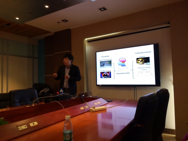 在本次讲座中,李毓龙教授介绍了其研究组开发的多种检测神经递质释放的荧光探针,包括新型多巴胺荧光探针及乙酰胆碱探针等。多巴胺是一种重要的单胺类神经递质,在中枢神经系统中调控学习记忆、奖赏和运动等一系列关键的神经功能,大脑中多巴胺的失调会导致许多疾病的产生例如多动症和帕金森病等。李毓龙教授研究组将对结构变化敏感的荧光蛋白嵌入人源多巴胺受体,当多巴胺释放和其受体相结合后会引起受体构象发生变化,多巴胺这一化学信号就可以转化为荧光信号,利用成像技术可以检测到该信号。该荧光探针已被用于监测在果蝇、斑马鱼和小鼠中内源多巴胺动态变化情况,包括动物体内多巴胺递质的释放情况,从而有助于研究多巴胺与脑功能的关系。李毓龙教授还指出进一步优化其探针,提高其检测的信噪比,此基础上更进一步的开发其它神经递质探针。