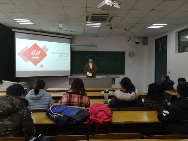 我院2018级硕士党支部于2018年12月25日召开了改革开放40周年组织生活会的学习和讨论。党支部书记丁嘉伟、宣传委员李星宇以及组织委员袁佳带着大家共同学习了改革开放40周年相关知识,其他党员交谈了关于《中国共产党党支部工作条例(试行)》的学习心得,此外,邱振清书记和吴志龙老师到场给予了指导建议,大家皆收获颇丰。