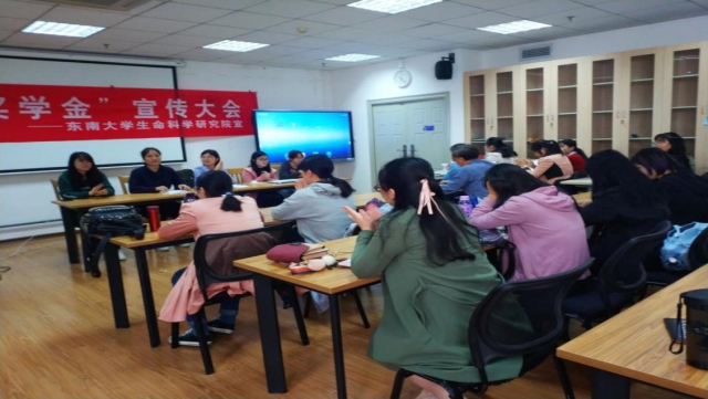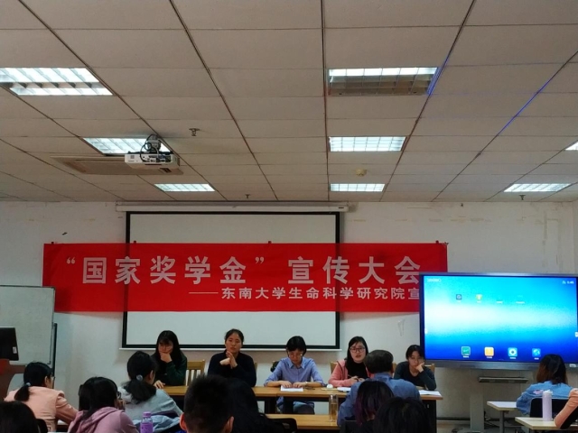 2019年4月23日,太阳成集团生命科学研究院在四牌楼校区李文正楼213会议室举办了国奖宣讲会,旨在通过优秀硕士、博士生的经验分享和鼓励支持,让2018级新生燃起学习热情,不忘考研初心,激发科研动力,鼓励更多的学生向着国家奖学金以及更高的奋斗目标进发。本次会议由邱振清书记组织策划。