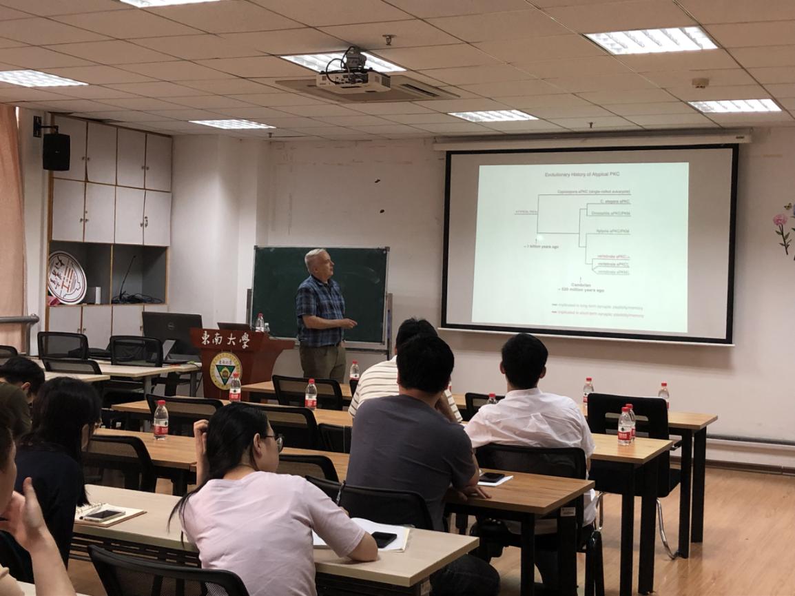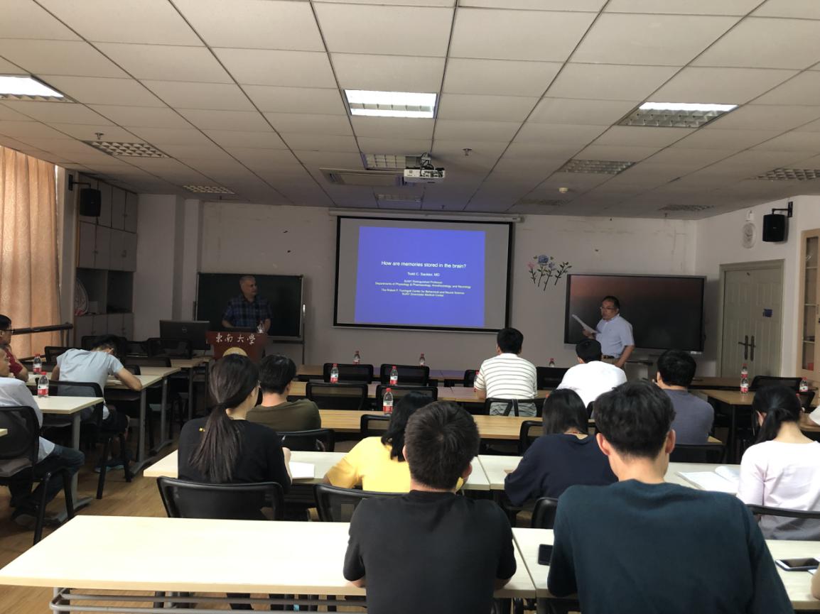 2019年6月26日下午,来自纽约州立大学(State University of New York)的Todd C. Sacktor教授为我院师生带来名为“How are memories stored in the brain?”的前沿科技讲座,此次讲座由我院陆巍教授主持,地点为李文正楼南213会议室,我院众多师生到场参加,此次讲座属于我校“三江大讲堂”学术报告系列。