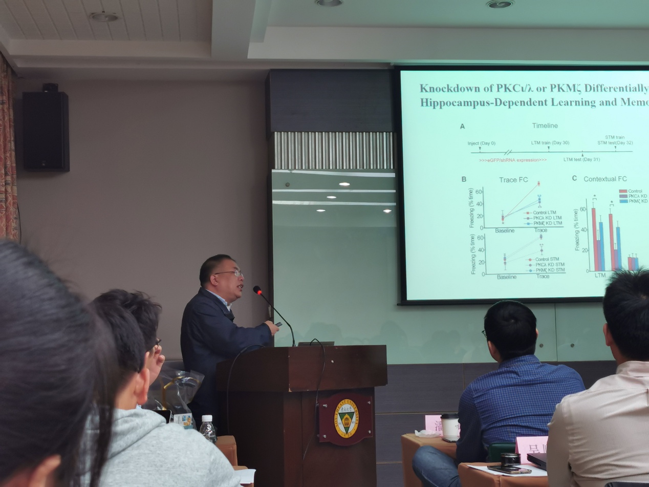 接下来,陆巍教授的“恐惧记忆的巩固、存储和提取:从分子到环路”,讲述了近年来有关PKC和记忆的峰回路转的研究故事。汪浩教授进行了题目为“midbrain GABAergic pathway for feeding behavior”的报告,讲述了一些在小鼠中的、手段方法经典又有力、结果朴实又精彩的、关于神经递质GABA和喂食行为的神经学研究。睡眠是人类生命中不可少的一部分,郭方教授讲述了其团队拓展了过去发现的、在果蝇体内有关睡眠的神经环路的故事,刘畅教授又在其讲座中为与会者补充了有关睡眠的重要特性——睡眠与记忆的相互调控。