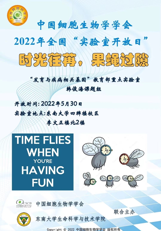 2022年8月9日,为了鼓励在参加2022年全国联动“实验室开放日”活动中表现突出的地方学会和专业分会以及实验室,中国细胞生物学学会遴选了2022年度科普活动优秀组织团体以及科普活动优秀实验室。我院韩俊海教授实验室组织了主题为“时光荏苒,果蝇过隙”的线上科普视频活动,喜获“科普活动优秀实验室”荣誉(https://www.cscb.org.cn/news/7443.html)。