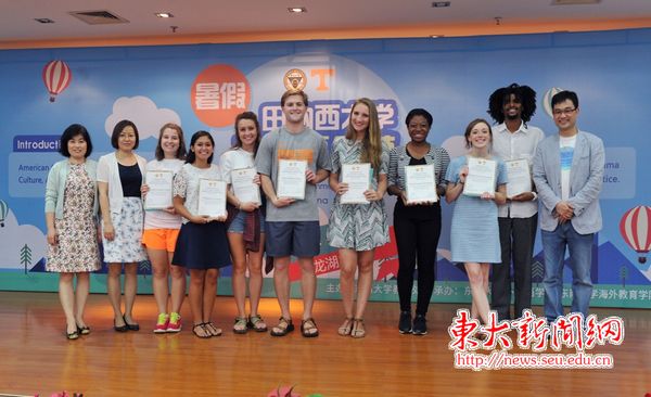 On the afternoon of July, 18th, the closing ceremony of 2015 Southeast University& Tennessee University English Summer Camp was held at the Lecture Hall in Foreign Language Department, Jiu Longhu Campus in SEU. At the ceremony, many scholars from UT and SEU successively made comments for the Summer Camp. They were Dr. Pia Wood, Deputy Director of Academic Affairs from UT, teacher representative–professor Tvvi Small from UT, Wu Juan, Deputy Director of Academic Affairs from SEU, Qiu Bin, Dean of Overseas Education Department in SEU, Chen Meihua, Dean of Foreign Language Department from SEU and professor Mao Caifeng, teacher representative from SEU. Also, a drama competition was held during the ceremony.Students from five classes were divided into ten groups and played wonderful dramas. Finally, the theater group who performed The Merchant of Venice won the champion. The Summer Camp is beneficial to students in SEU as well as students in UT. On one hand, faculty and students in UT fully experienced the extensive and profound Chinese culture after enjoying the talent show and subject lecture brought about by students from SEU. On the other hand, students from SEU also improved their practical English, learned the American style multicultural knowledge and fostered international perspective. Most importantly, they all reap precious friendship.