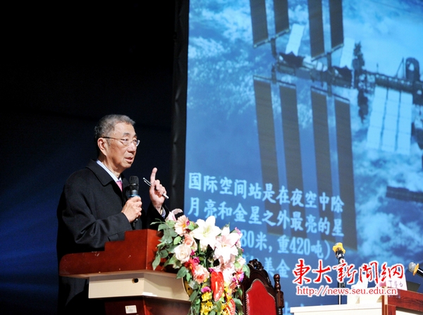 In the afternoon, Ting made a speech entitled “Latest Development of AMS” in front of over 1,500 teachers and students in Jiaotingbiao Theater, Jiulonghu Campus. Ting talked about the Annual International Conference on Physics 2015 held in the Netherlands, during which 9 most important universal physic discoveries in the past two years were mentioned in the last report. Six of them came from the results of AMS program co-produced with SEU. At the end of the speech, Ting thanked SEU again for the efforts it had made in the program.