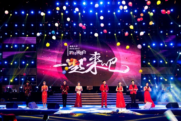 At last, all the guests, school leaders, teachers and students counted down together to greet the arrival of the New Year! Vice Secretary Liu Bo expressed New Year blessings that all the students study hard to “meet with a better self”! Then the New Year ‘s Eve Gala Show preparatory team had shown a picture-- it was a picture made up of 2017 nails which were arranged into the shape of Chinese character “一起来吧”(meaning come together in English), “止于至善”(SEU school motto) and the top view of this gymnasium. The preparatory team hoped to wish SEU teachers and students a united and striving New Year and to wish SEU greater prosperity through the picture. The song SEU Laud then successfully concluded the New Year Eve’s Gala Show.